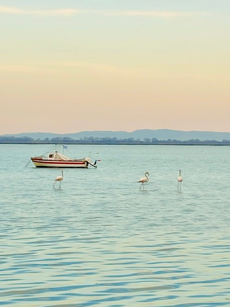 Mare e’ calmo e guardiamo gli altri pescatori pescare .