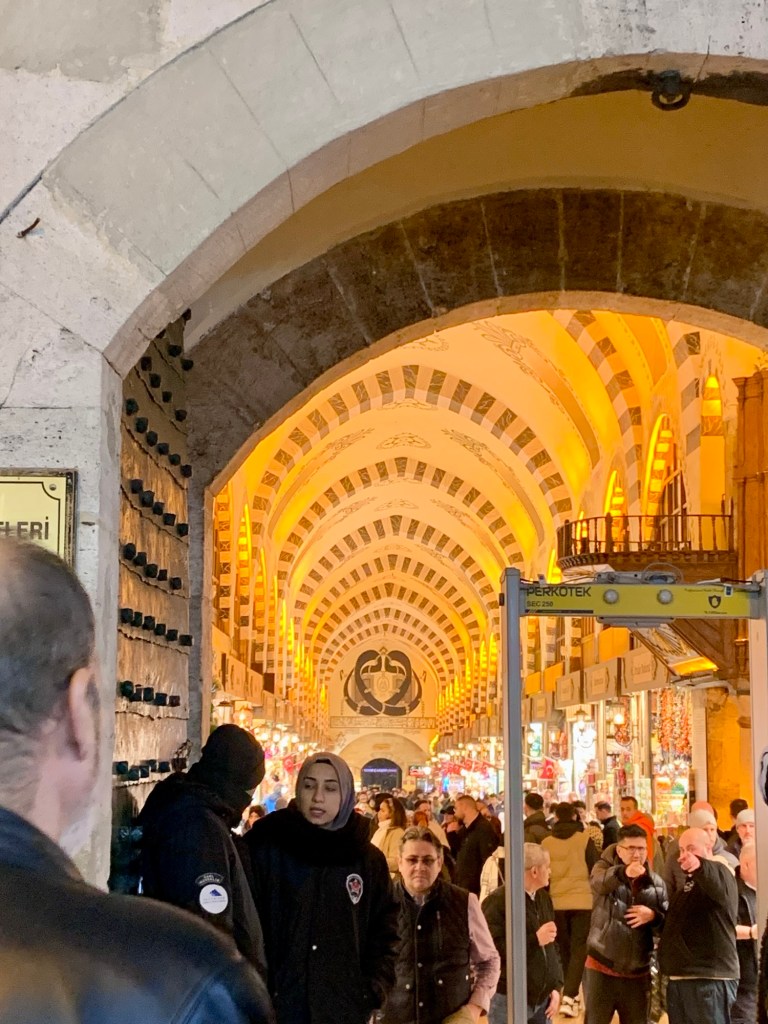 Professore , ci dà mille spiegazioni in inglese , e ordina per noi , come si mangia alla turca , una serie di antipasti , praticamente tutti a base di formaggi , buonissimi , frutta , spezie , frutta secca , il tutto bagnato dal Raki , diciamo la versione turca dell’Uzo . Il professore ci insegna come berlo. In questo strano ristorante con un grande camino al centro , sembra una grande casa , e tutti bevono raki , che si portano da casa , bottiglioni da litro , e se non te lo sei portato da casa , c’è anche lo “spaccino “ che va a comprarlo al supermercato per te .