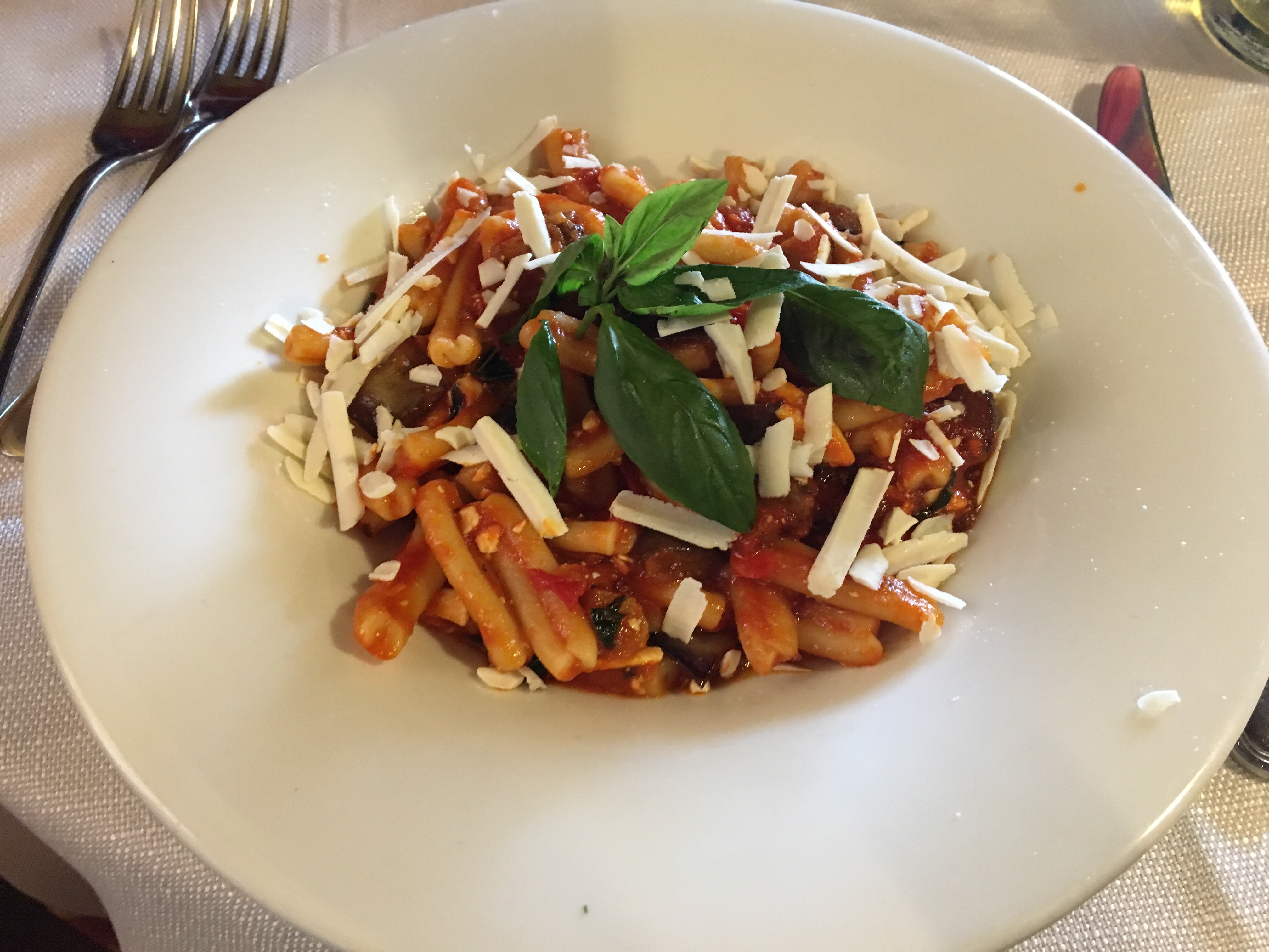 Gustosa e leggera …. quindi c’è ancora spazio per assaggiare i primi …. una classica pasta alla Norma …..