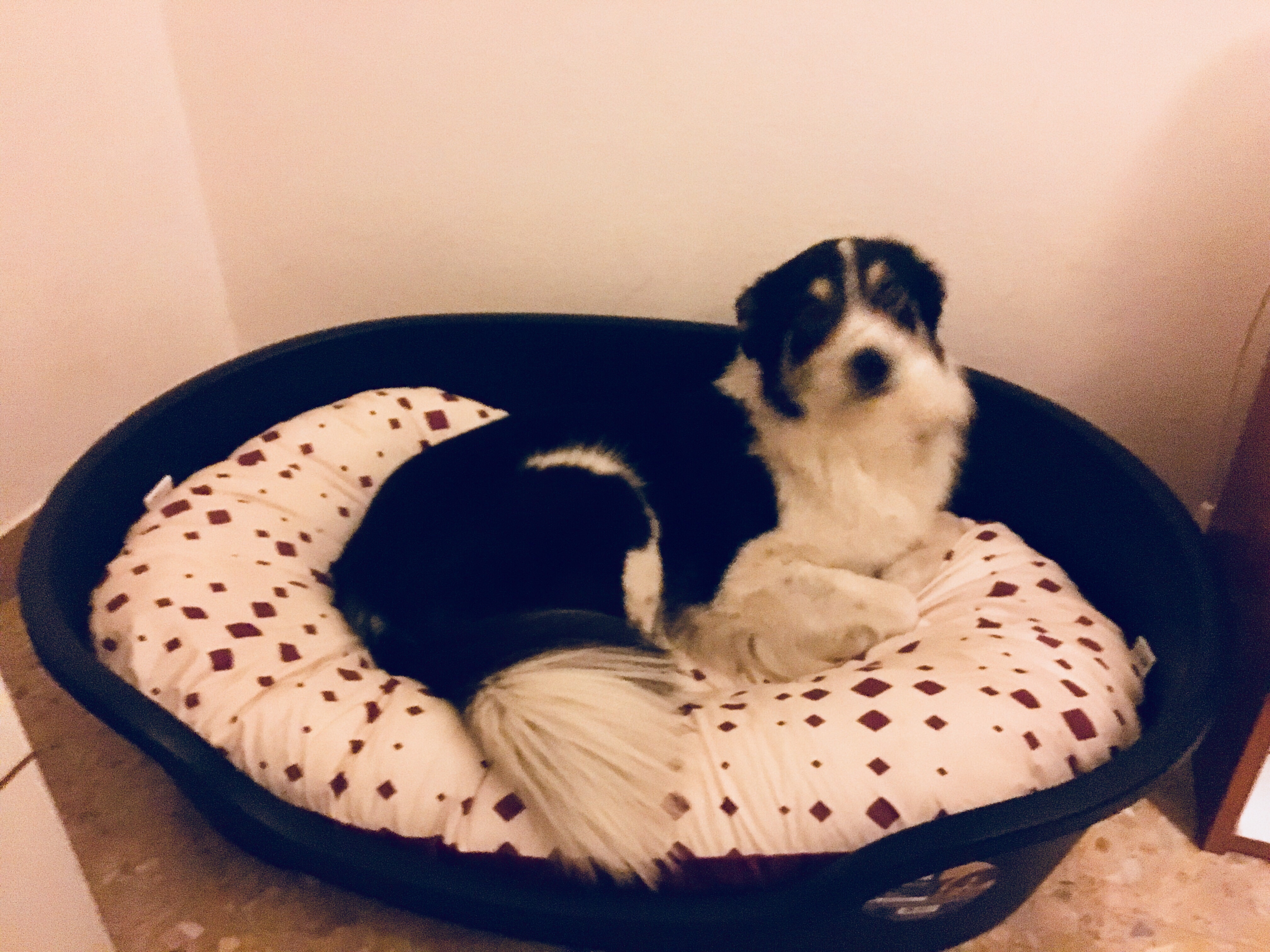 Sabato sera siamo andati a trovarli….. e Argo sta benissimo e’ felice coccolato e finalmente tranquillo … guardate che letto che ha….