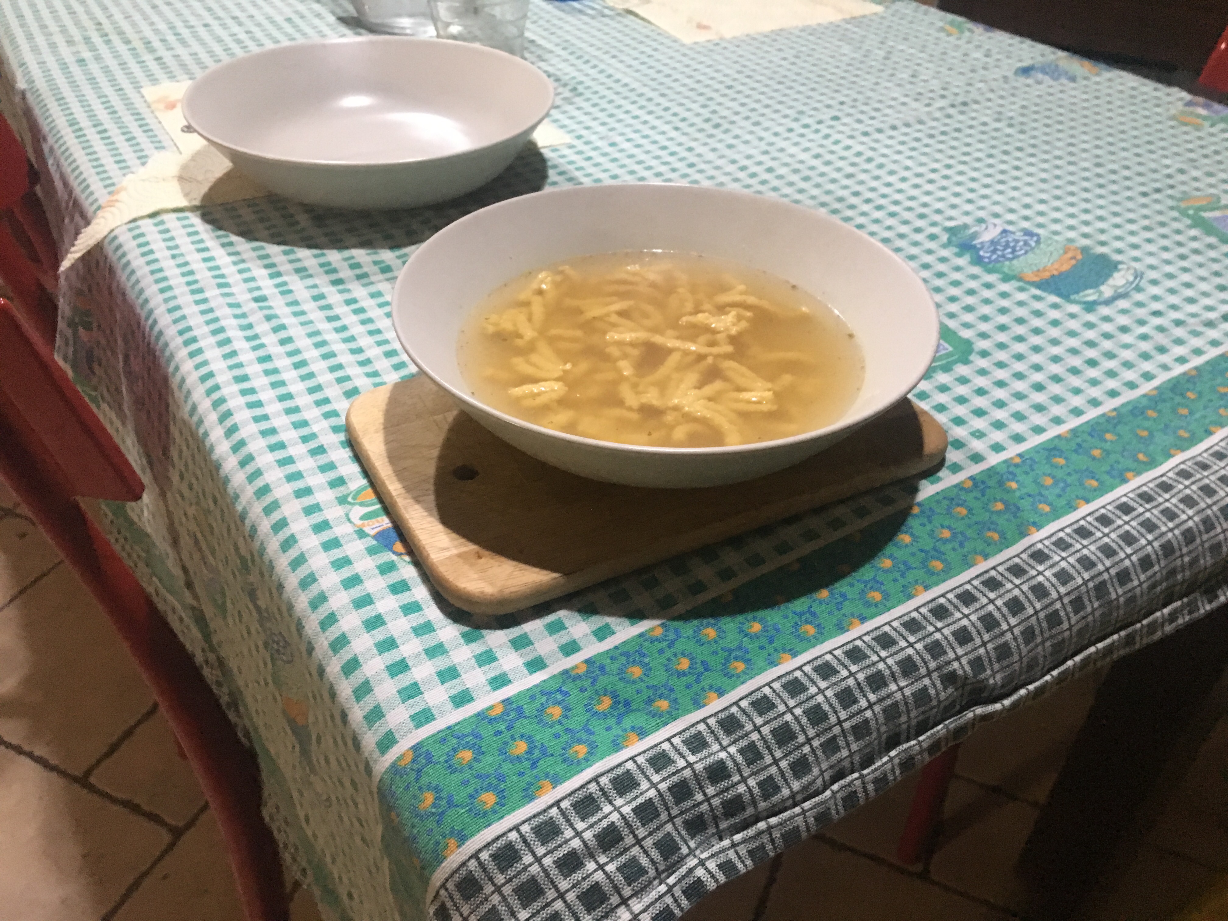 Munitevi di uno schiaccia patate a buchi larghi e fate un buon brodo di carne anche vegetariano per chi lo preferisce.